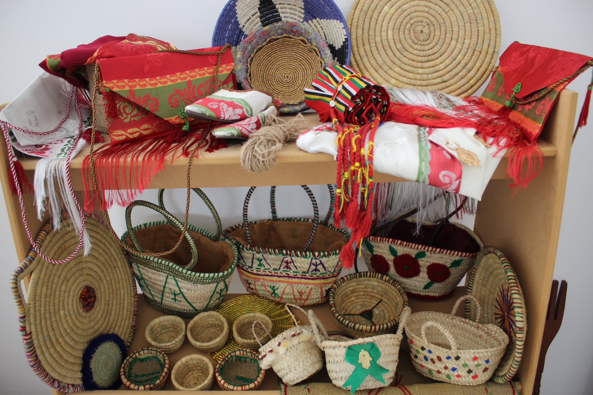 Chaque pièce est sublimée par des détails colorés : pompons vibrants, touches de laine, coquillages naturels et motifs traditionnels, apportant une note bohème et élégante à votre intérieur. Polyvalents, ces produits peuvent servir de rangement, de décoration ou même d’accessoires du quotidien.